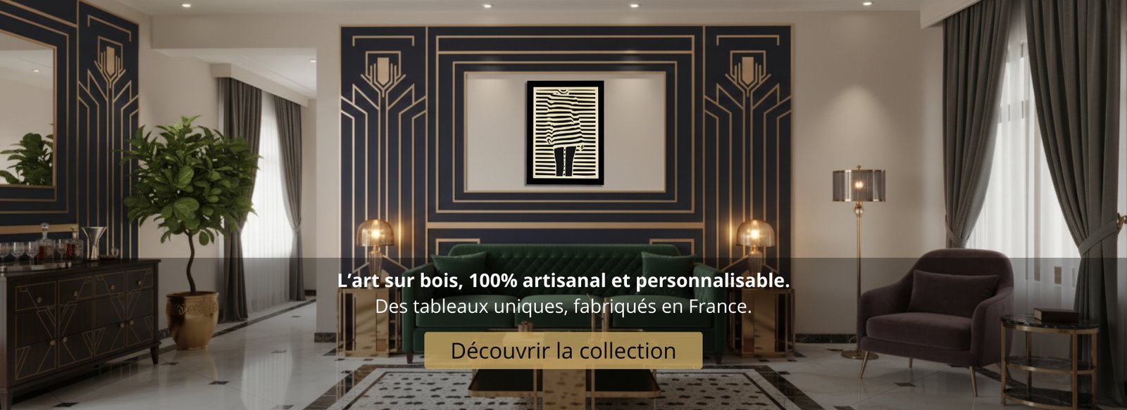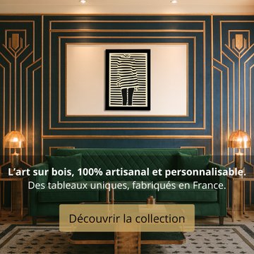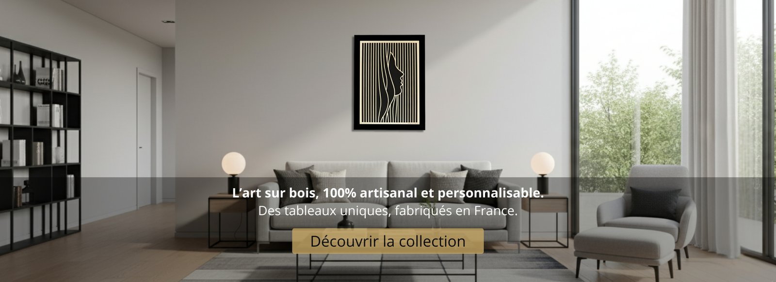 Chez Woodillusion, nous concevons et fabriquons des tableaux décoratifs en bois artisanaux, personnalisables, fabriqués en France, et pensés pour apporter une touche naturelle et élégante à votre intérieur. Chaque cadre est réalisé avec soin, en respectant l'environnement, afin de vous offrir des créations uniques qui subliment vos espaces de vie. Le bois utilisé est du peuplier, issu de plantations européennes contrôlées et durables.